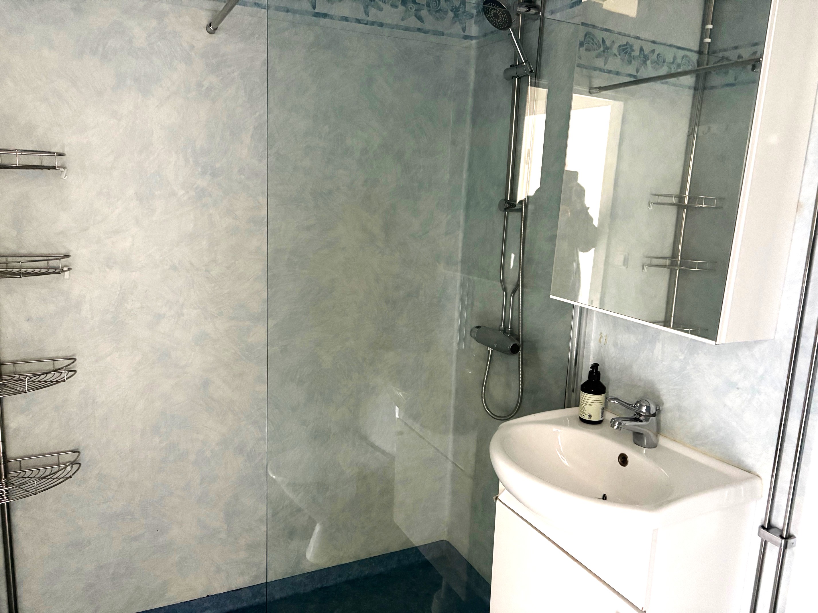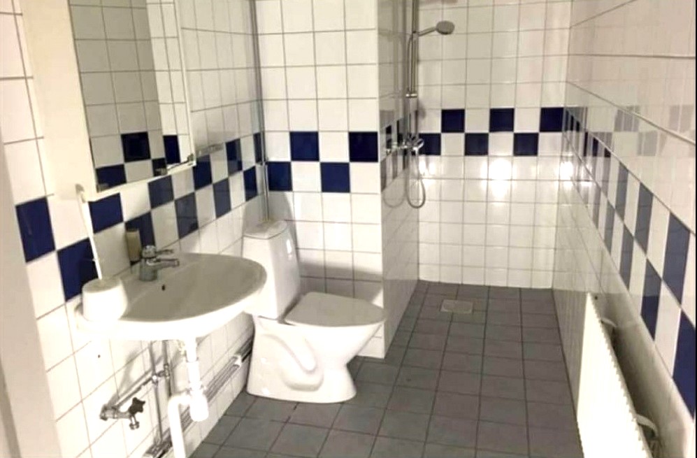 Badrum med kakel och tvättmaskin. Egen uteplats på gården. Värme och vatten ingår, hushållsel tillkommer, fiber finns men eget abonnemang krävs.