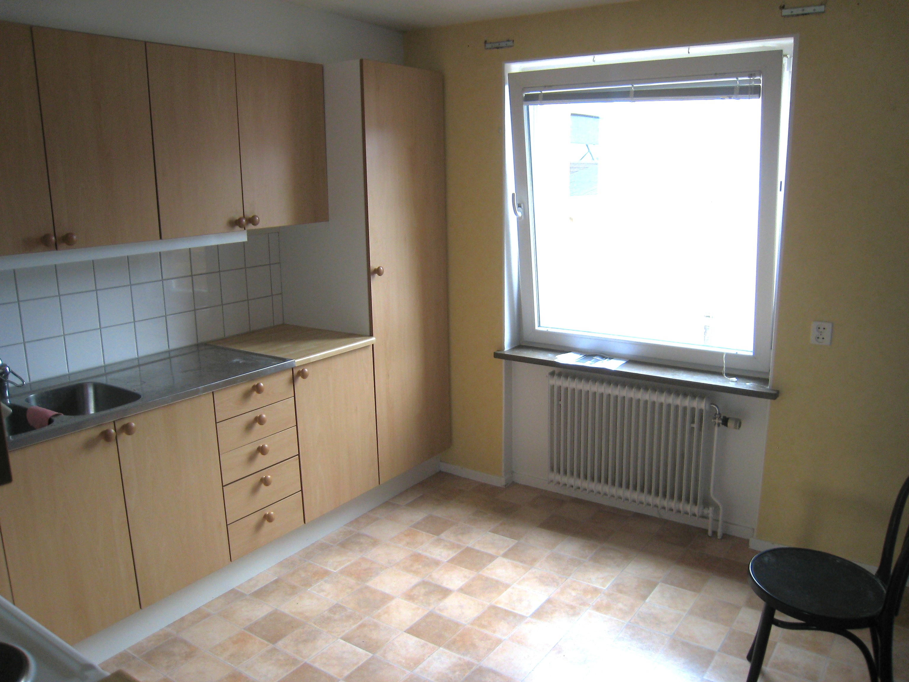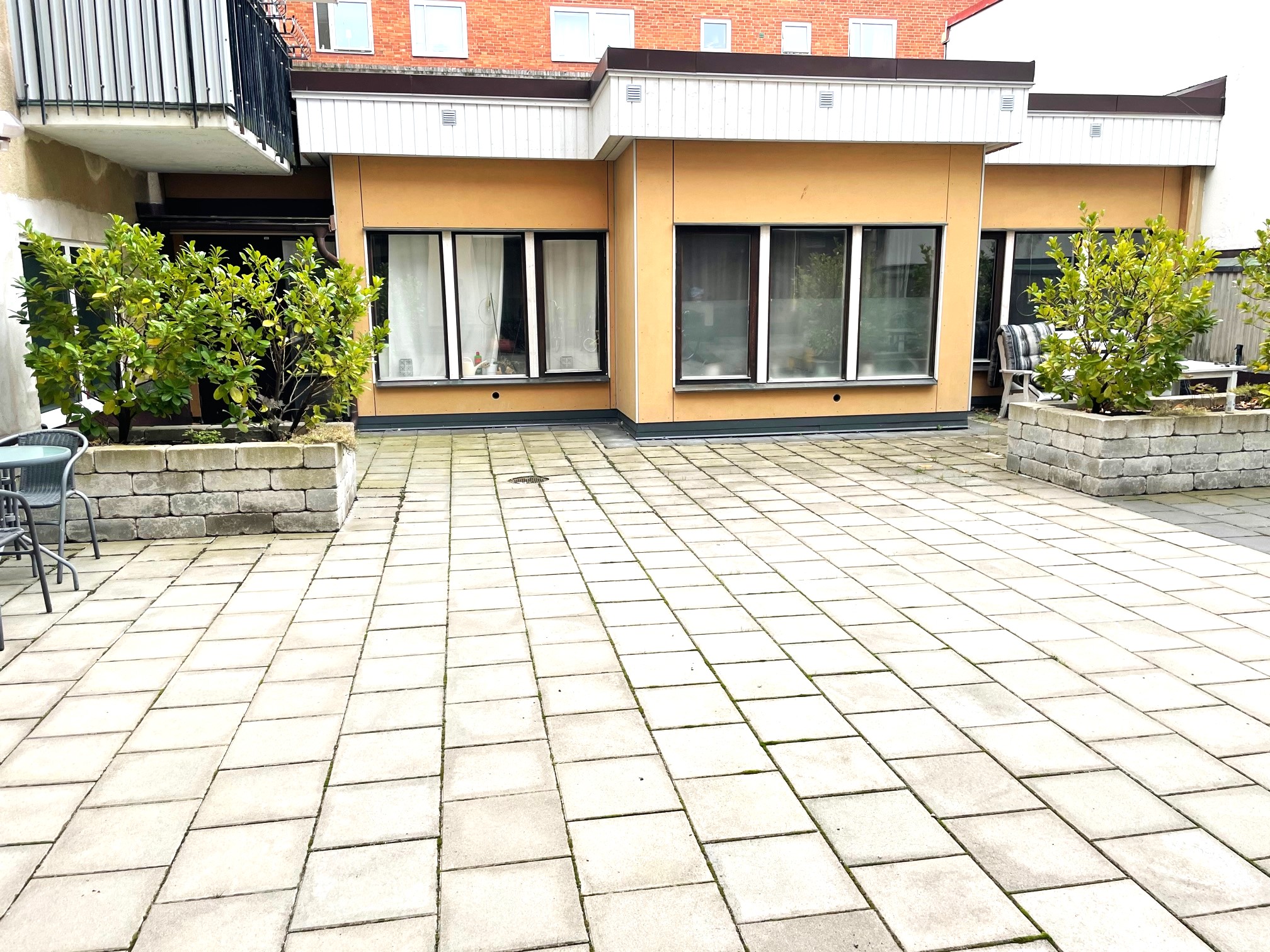 Lägenheten ligger på innegården som ett eget hus. Kök med fläkt, diskmaskin samt kyl och frys.