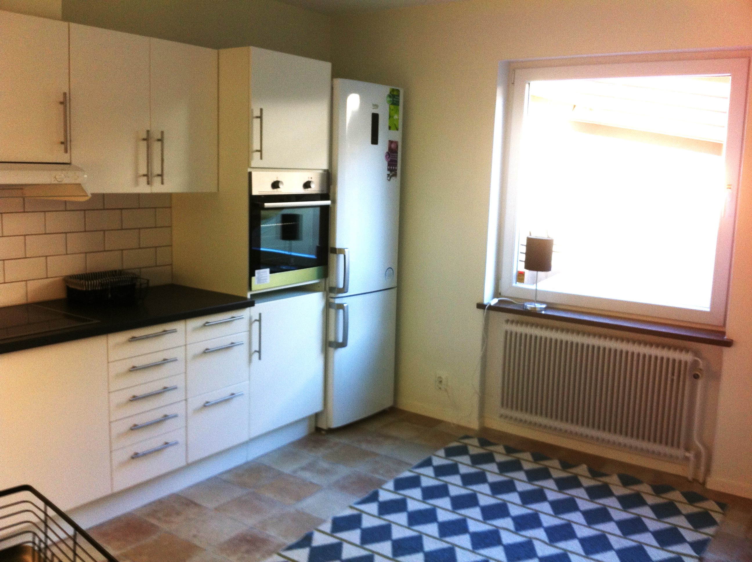 Lägenheten ligger ut mot torget med två franska balkonger med mycket ljus. Kök med fläkt, diskmaskin, mikro, inbyggnads ugn, häll samt kyl och frys.